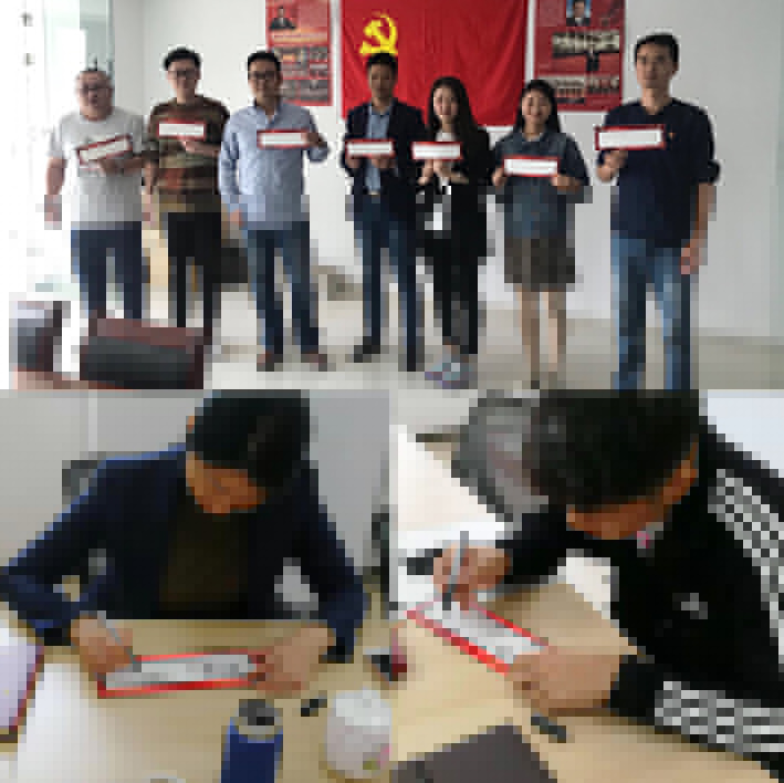 第七黨支部蜀山及肥西黨小組分別舉行了“黨員承諾、踐諾”活動。小組內(nèi)黨員同志進行討論,結(jié)合日常工作和黨建學(xué)習(xí),撰寫了一句切實可行的承諾,黨員之間相互監(jiān)督踐行情況。通過此項活動的開展,增加了黨員的積極性,促進良好的黨風(fēng)和工作作風(fēng)。