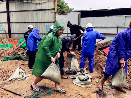 責(zé)任重于泰山!第七黨支部工程部的黨員同志們帶頭,主動擔(dān)當、敢打頭陣,一遍變用身體扛住百斤的沙包,筑起一層層堡壘,始終奮斗在工地抗洪的第一線,成為防汛“頂梁柱”。面對高強度的作業(yè)和超48小時連續(xù)值班,全體工程人沒有說一聲苦,沒有喊一聲累。汛情在哪里,城建人就在哪里,在風(fēng)雨中拼搏,在泥濘中前行。